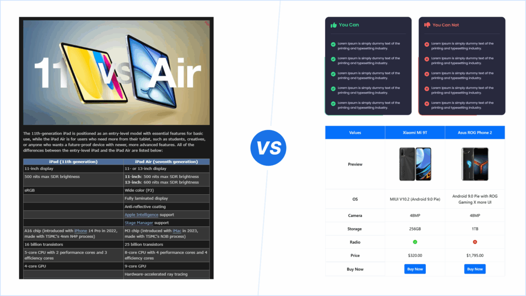 - Make content Scannable: Use comparison tables, pros and cons lists, and clear call-to-action buttons to guide readers toward decisions.