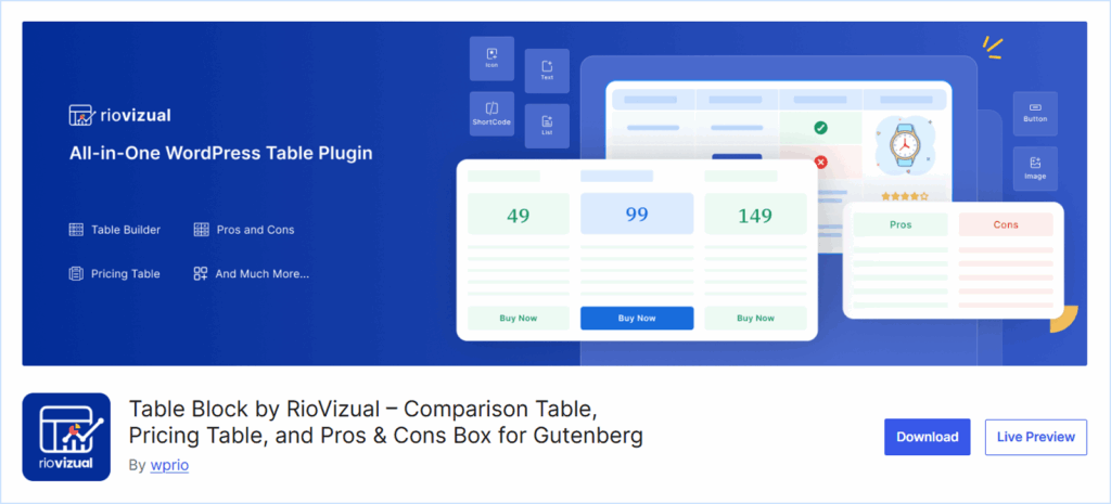 - Use Tools that help CRO: Use RioVizual for creating high-converting comparison tables, schema-ready Pros and Cons tables, and Advanced Data and Pricing Tables for any WordPress website.