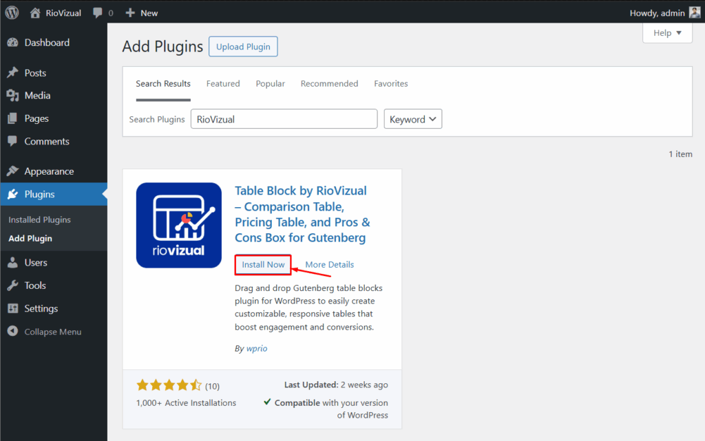 - Click Install Now to install the plugin.