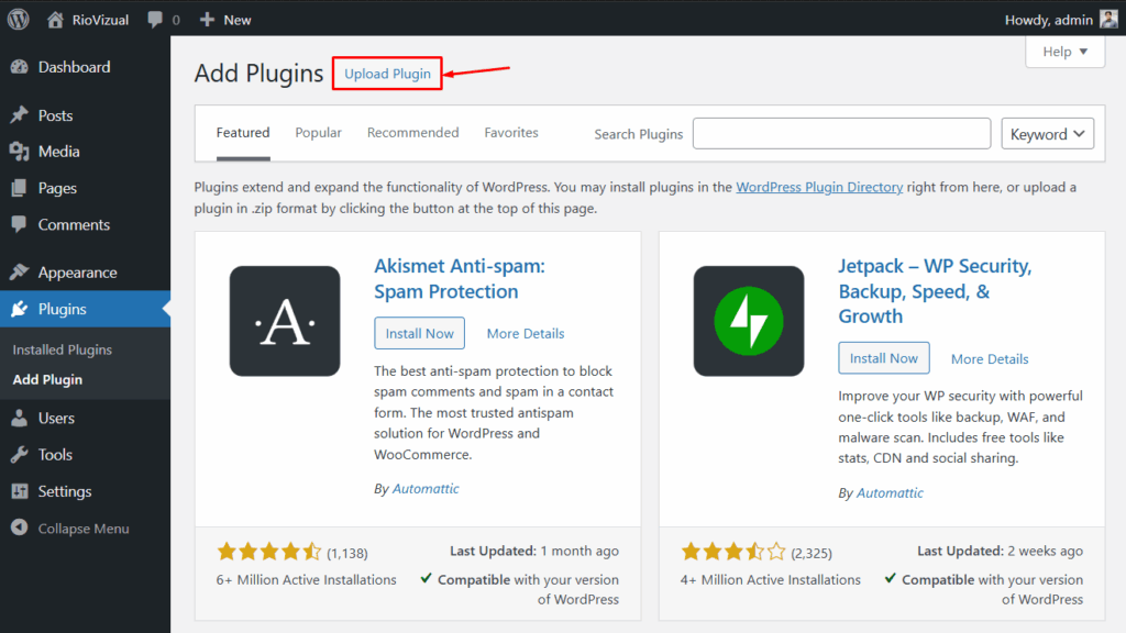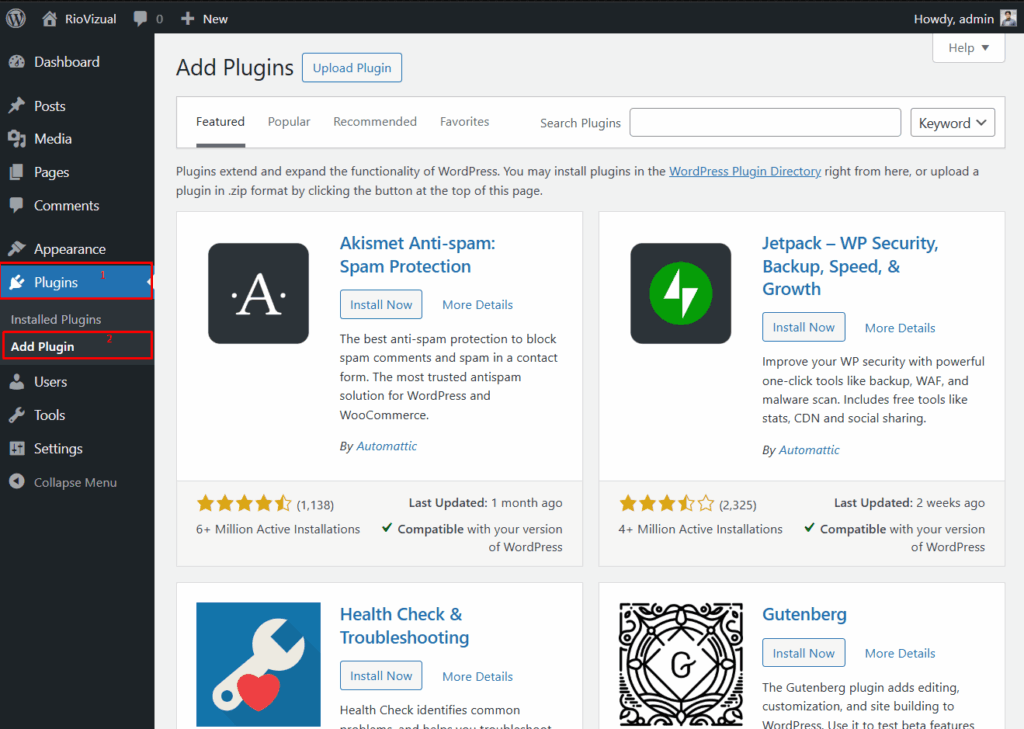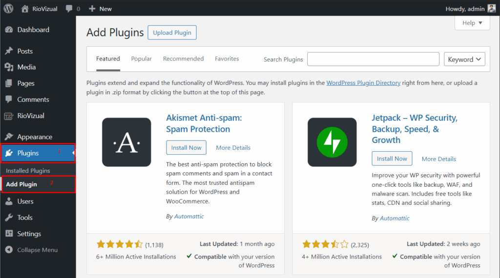 - Go to your WordPress Dashboard → Plugins → Add Plugins.