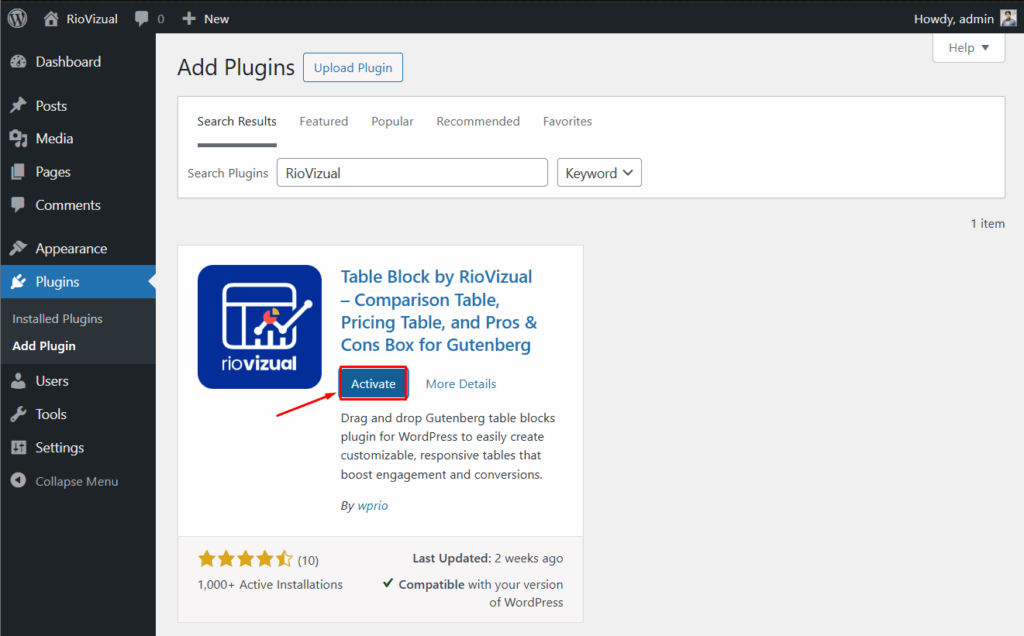 - Then click to Activate to launch the plugin.