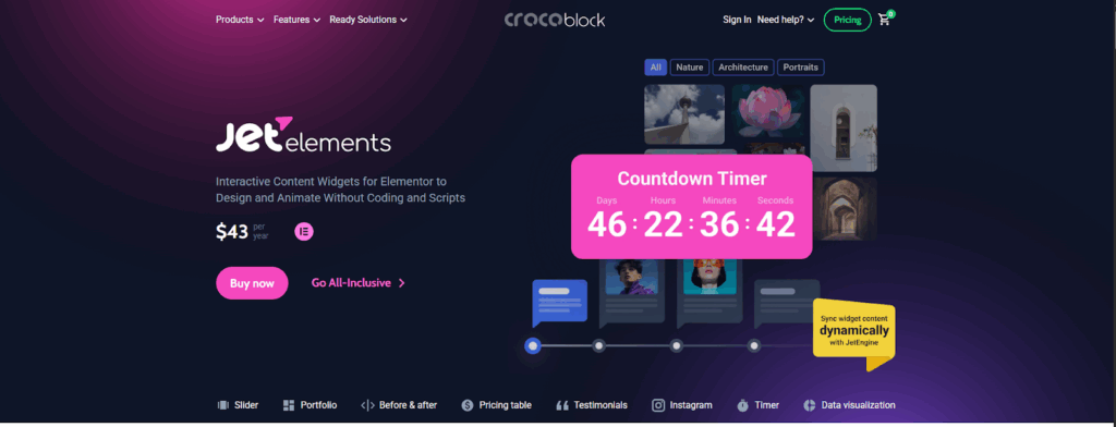 Jet Elements is a powerful Addon pack for Elementor websites from Crocoblock. It offers 45+ modules to power Elementor-fueled websites. The clean code and advanced customization features established Jet Elements as an ultimate choice for almost 289K Elementor users worldwide.