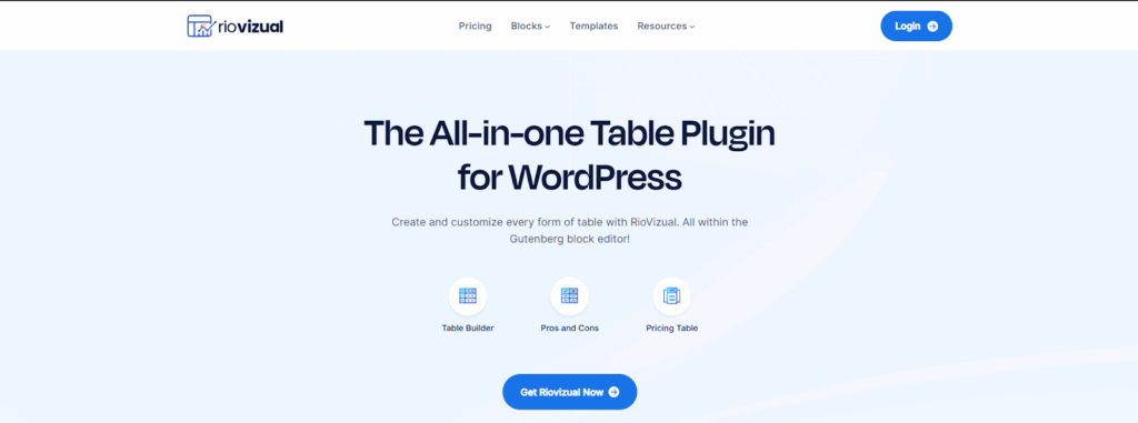| RioVizual | Table builder focused, 19+ elements, 57+ table templates, lightweight, Pros and Cons schema, Elementor widget. | ✅ | $49/ year |