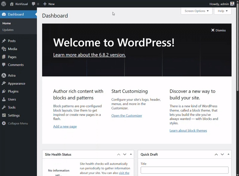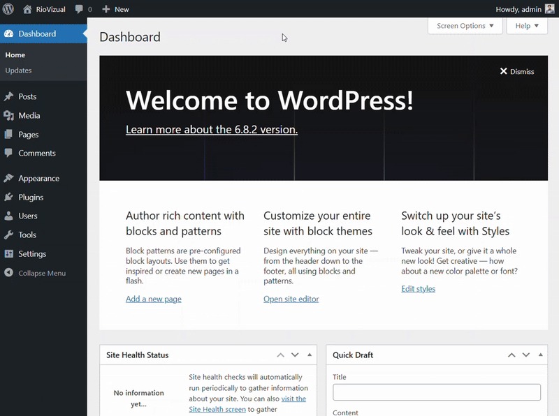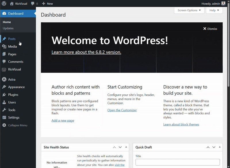 - Once activated, the plugin will add new functionality to your dashboard.