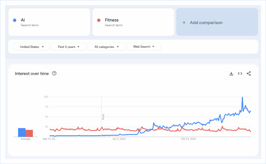 Trending analytics of AI and Fitness on Google Trends (Past 5 years in the US)