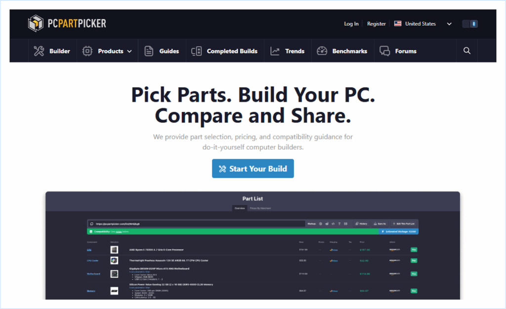 Example: PcPartsPicker