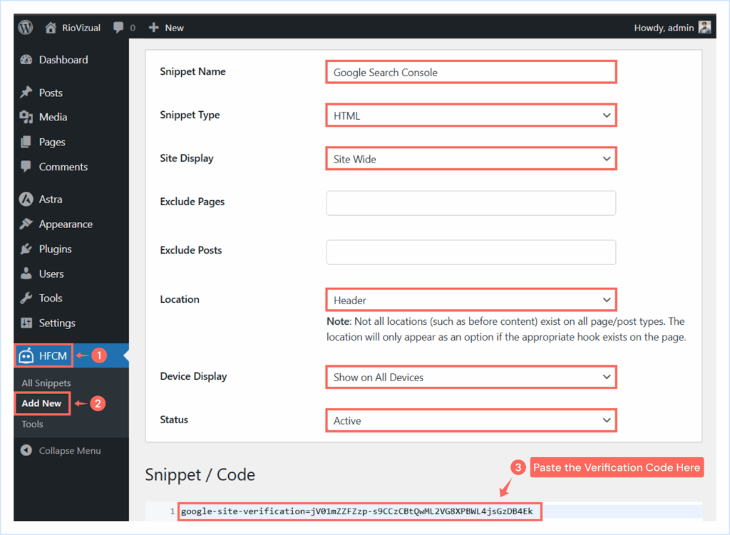 - Paste the code into your website’s Header section and save changes.