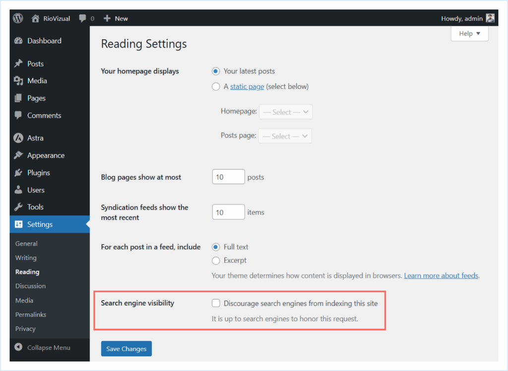 - Make sure the option “Discourage search engines from indexing this site” is unchecked.