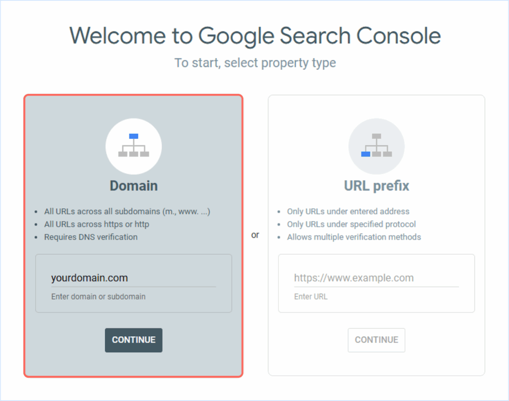 - Choose Domain Property and enter your domain name (without http:// or https://).