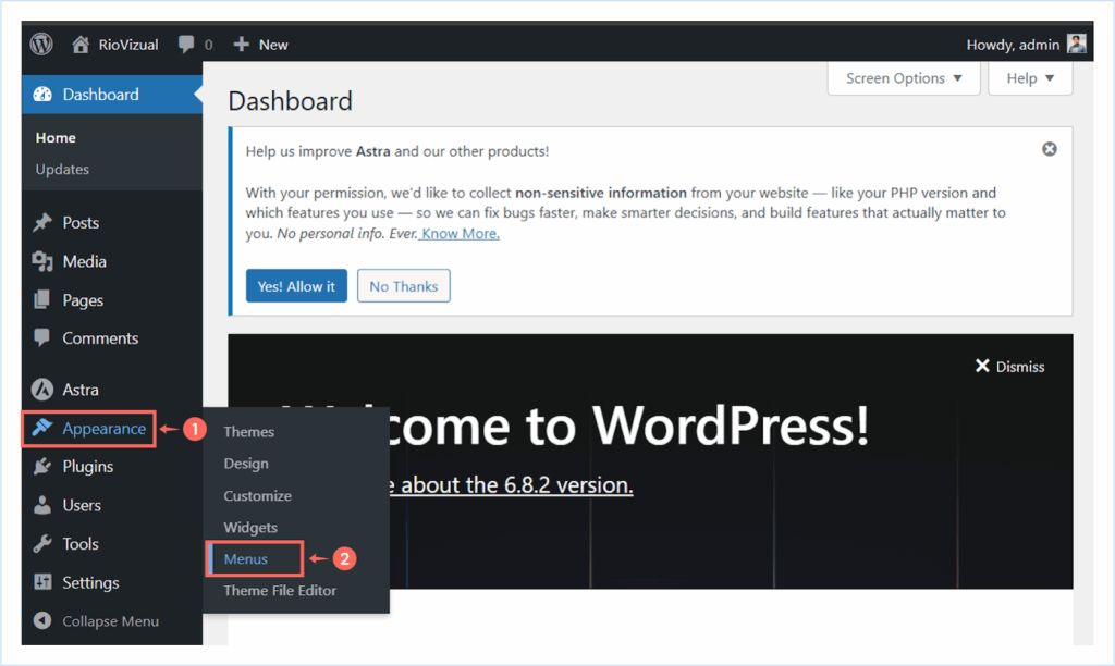 - Go to your WordPress Dashboard → Appearance → Menus