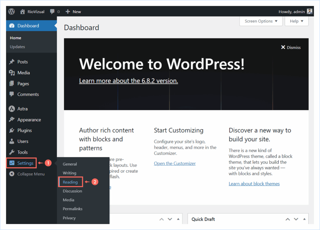 - Go to your WordPress Dashboard → Settings → Reading.