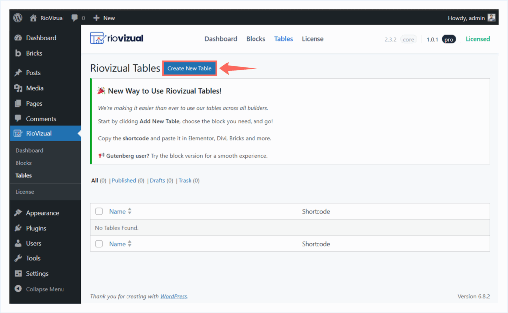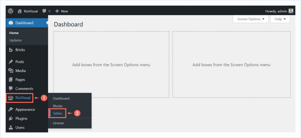 - Go to WordPress Dashboard → Riovizual → Tables.