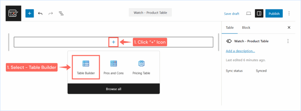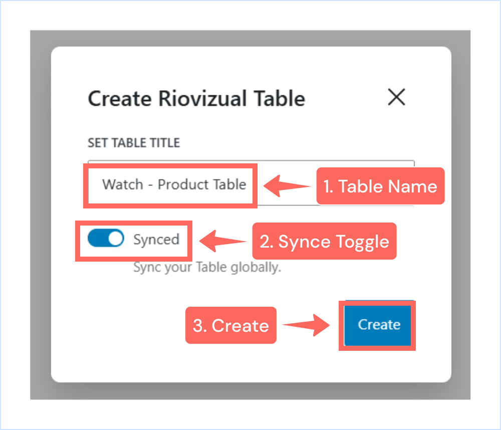 - Name your Table and enable the Synced toggle for global updates (optional)