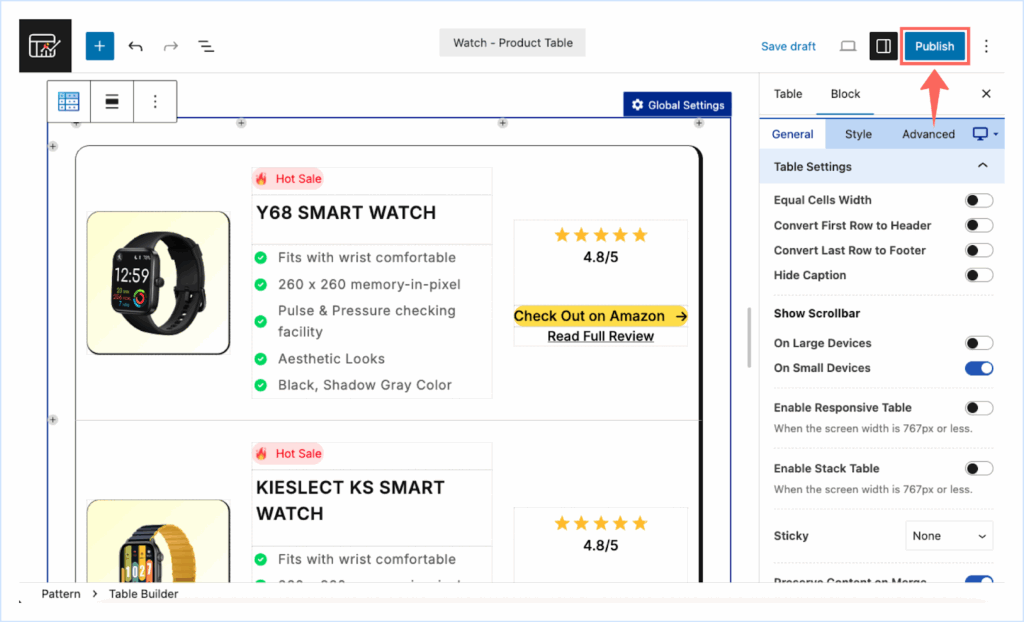 And that’s it. We have recreated the same table that we imported earlier. Now we can insert this table into any bricks builder post/pages using the Riovizual element or Shortcode element.