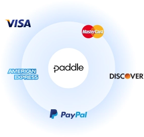 We accept all major credit and debit cards, PayPal, and trusted global methods by Paddle’s SSL-encrypted gateway.